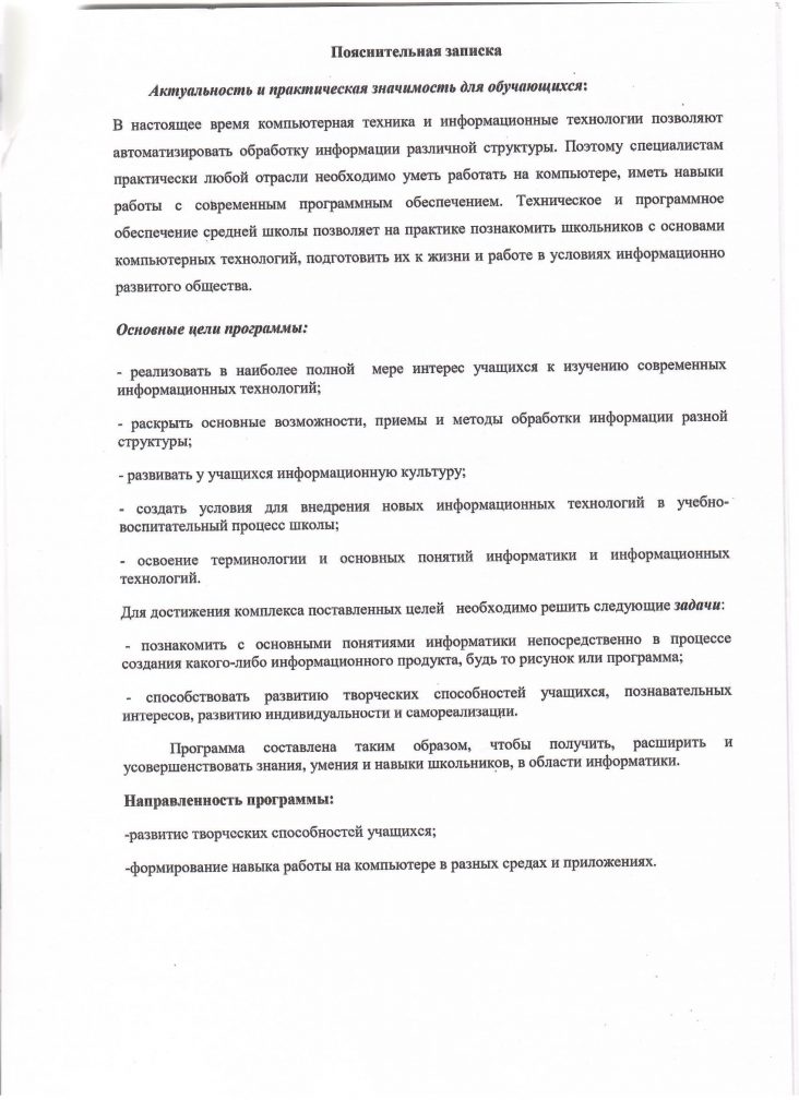Информатика бойынша "Информнайка"жұмыс бағдарламасы